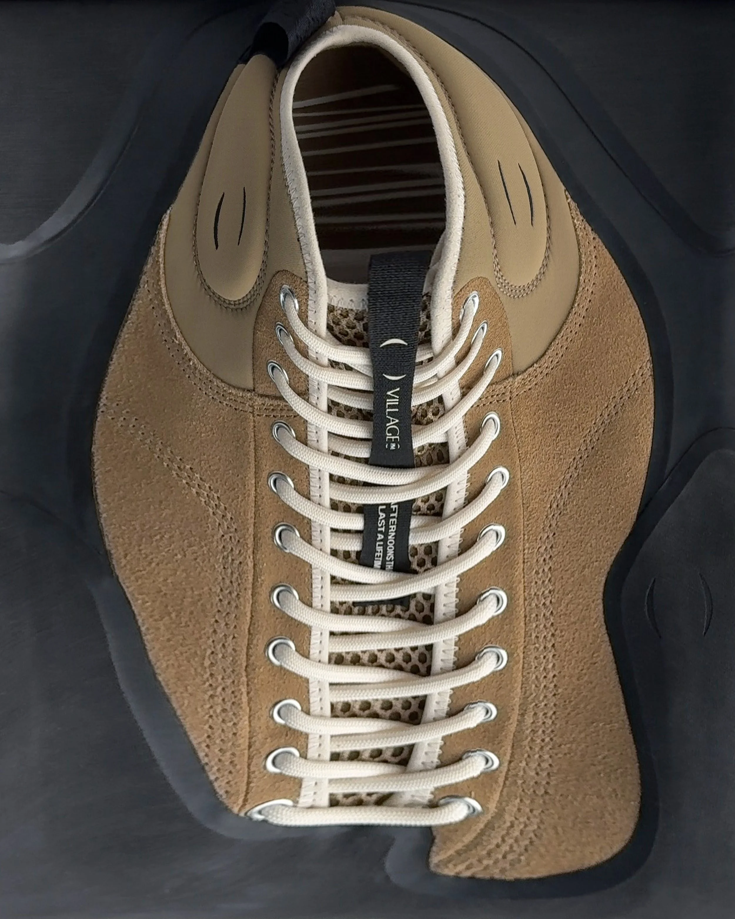 Doing away with tradition, Village PM applies a mindset informed by skateboarding culture's rebellion: rethinking function, evolving shapes, and refusing to rely on what already exists. The offering remains concise, preferring a less-is-more approach, spearheaded by the new 1PM MID: a mid-top evolution of Village PM’s seminal 1PM silhouette. Its padded mid-top collar is cut low at the back for easy entry and curves up towards the front for mobility and protection where you need it. Much like the 1PM and 1:30PM, the 1PM MID features Rubber Glove Technology™ and Village PM’s signature Asymmetrical Precision Fit™. As for the existing styles, the 1:30PM is a marginally more entry-level option, with lacing that stops short of the rubber rand and the absence of heel pulls, further distancing it from its genus point than its sister model, the 1PM. Asymmetric shaping, signature hand-wrapped rubber rand, reinforced toe protection, pliable structures, smooth rubber outsoles, heel pulls, extended lace systems, and down-turned shapes are considered with ergonomics and protection in mind, and become defining features of the brand’s Spring/Summer ‘26 collection.