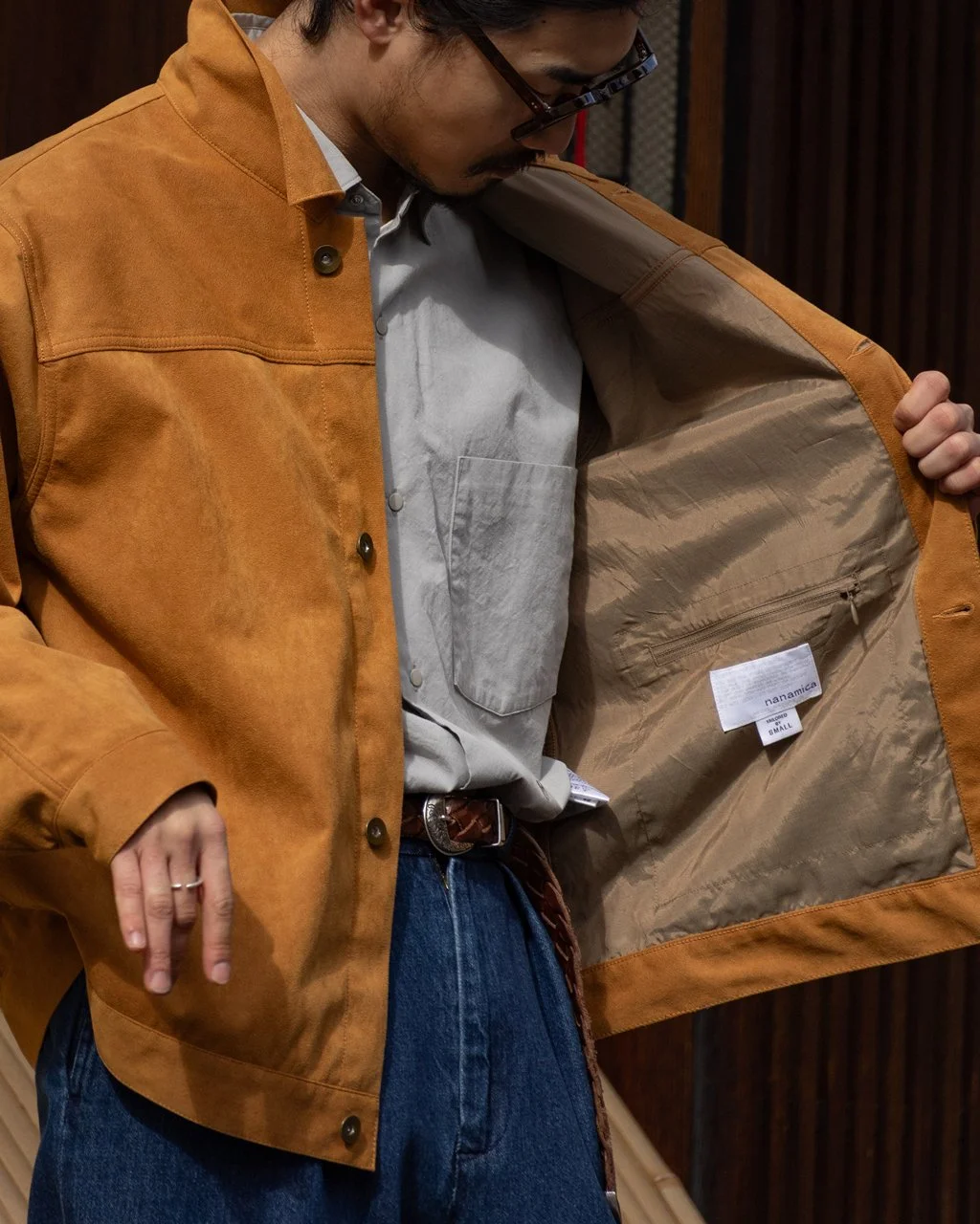 A key component of nanamica’s Spring/Summer ‘26 collection, the Synthetic Leather Short Jacket is made with Ultrasuede®, marking the Japanese label’s move towards incorporating more conscientious materials.
