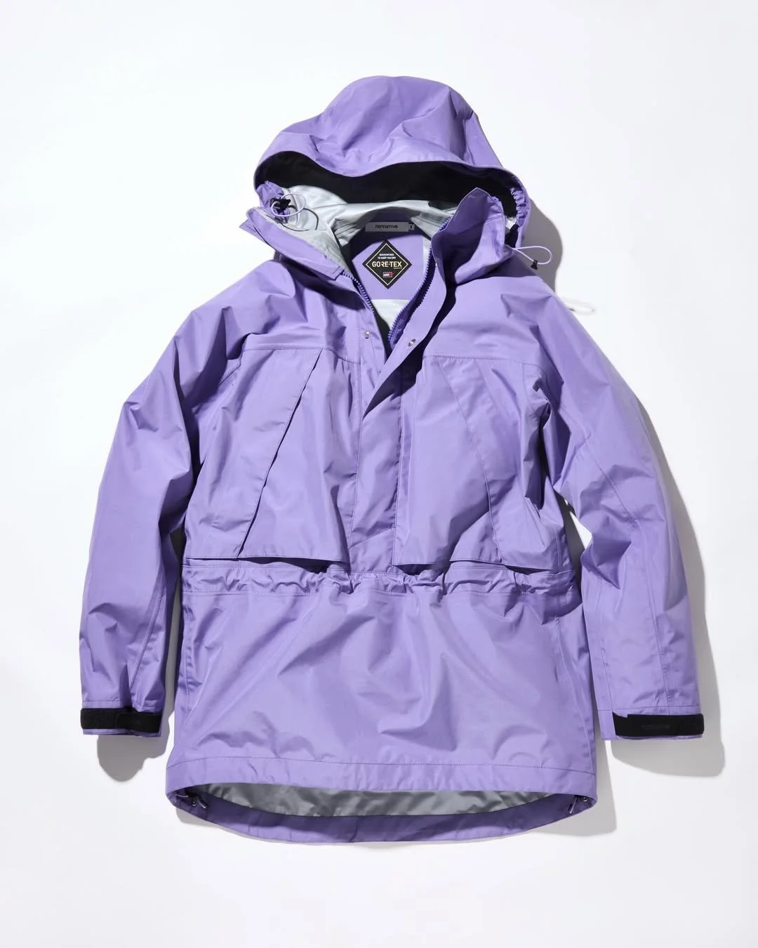 Here, the pullover anorak provides the framework on which nonnative builds the jacket, utilising a matte-textured polyester mini-ripstop material. Alterations to its parent silhouette include a longer length and several enhancements, including a cord-adjustable hood and hem, side pockets with storm covers, and internal stash pockets. Inside, a 3L GORE-TEX construction - hidden from plain sight and only exposed by a graphic on the sleeve - with taped seams provides a water-resistant, breathable, and windproof barrier against the elements. The jacket arrives in three colours: Charcoal, Grey, and Lilac - mirroring the wider seasonal colour scheme.