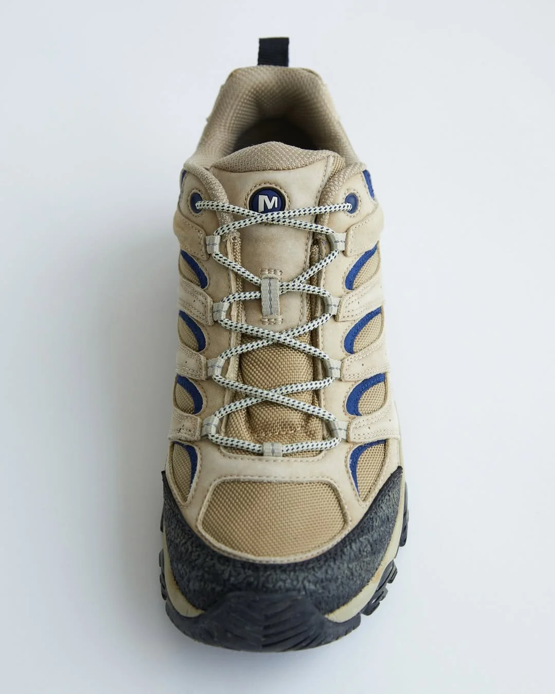 Based on Merrell 1TRL’s Moab 3 silhouette, a shoe rooted in trail performance and outdoor DNA, Khakis combines layers of polyester mesh, rubber, and nubuck to create texture and dimension. Wax finishing and stain washing capture a natural patina only achieved through intense wear, here replicated artificially and capturing the essence of ‘Old Faithful’. The structure of the Moab 3 remains largely unchanged, with its signature silhouette defined by speckled laces, a Vibram outsole unit, updated Super Rebound Compound midsole, and Merrell air cushioning in the heel for stability and comfort. The colourway is defined by worn sand hues and blue accents.