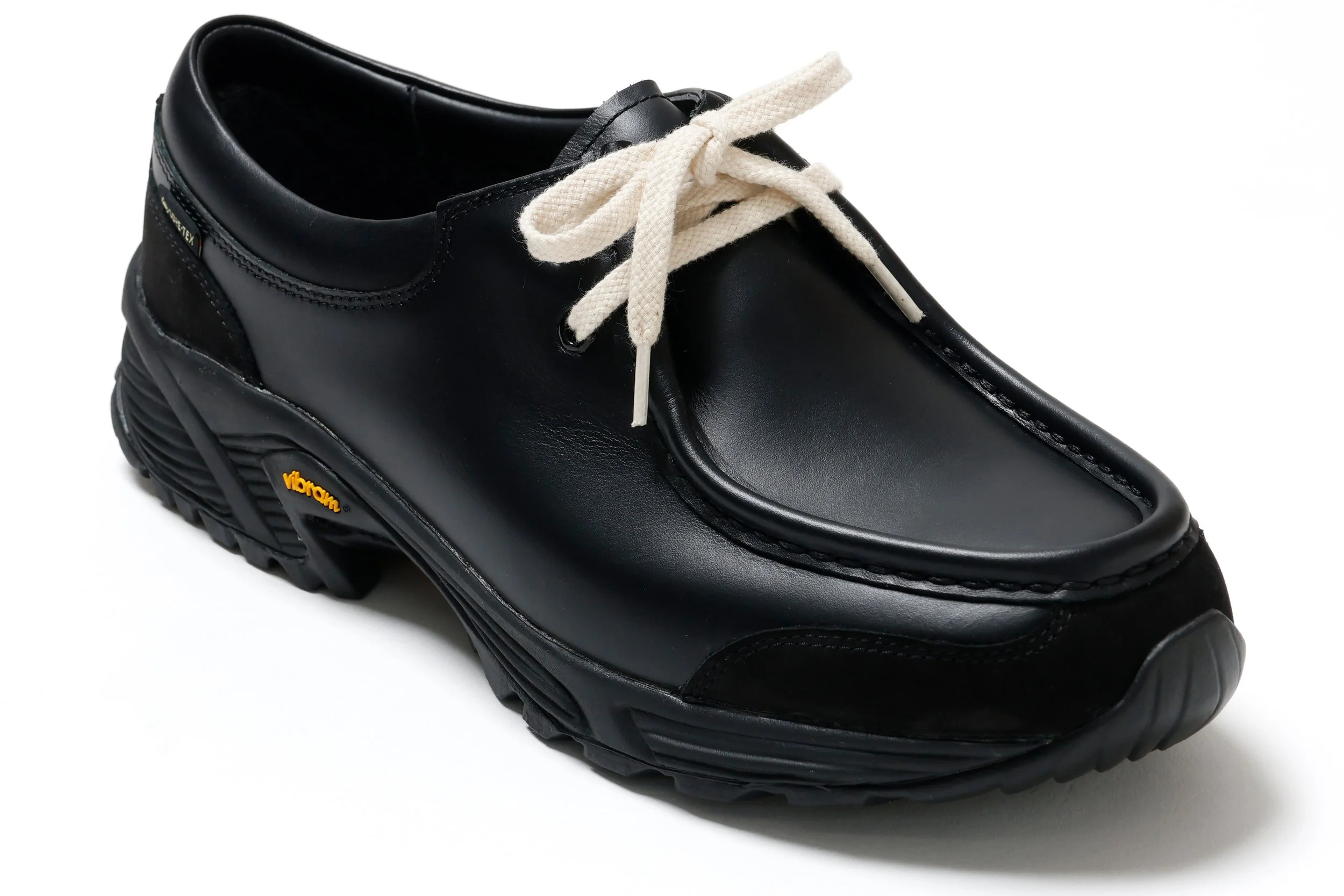 Found buried deep in the Japanese footwear brand’s archive, this Tyrolean silhouette is rooted in Alpine heritage, originally known as ‘Alpine Moccasins’ and supporting trekkers across the Alps, but has been repositioned as a city shoe without sacrificing its historical importance. Maintaining aspects of traditional craftsmanship, the shoe is made in Japan from genuine leather and features outdoor-ready technologies, including a GORE-TEX membrane for increased weather protection and a Vibram outsole for enhanced grip on wet or unstable terrain. Contrasting the all-leather upper is a wrap-around suede toe guard and another hit on the heel cup. The collar is cut lower than a typical Tyrolean silhouette, increasing the shoe’s wearability in the city. Two sets of laces accompany the shoe: a speckled pair and a white pair.