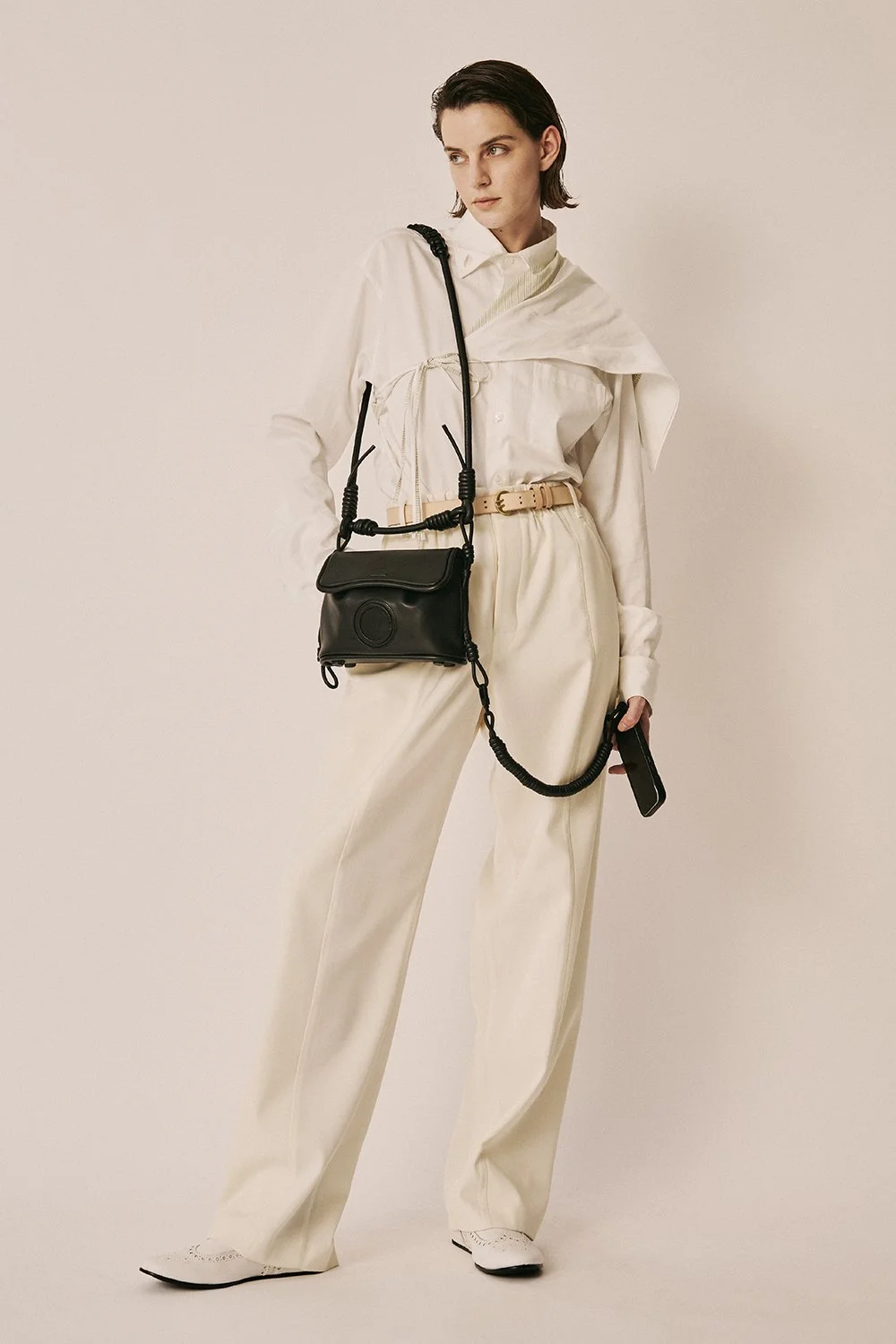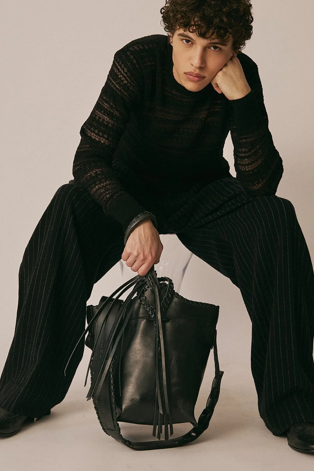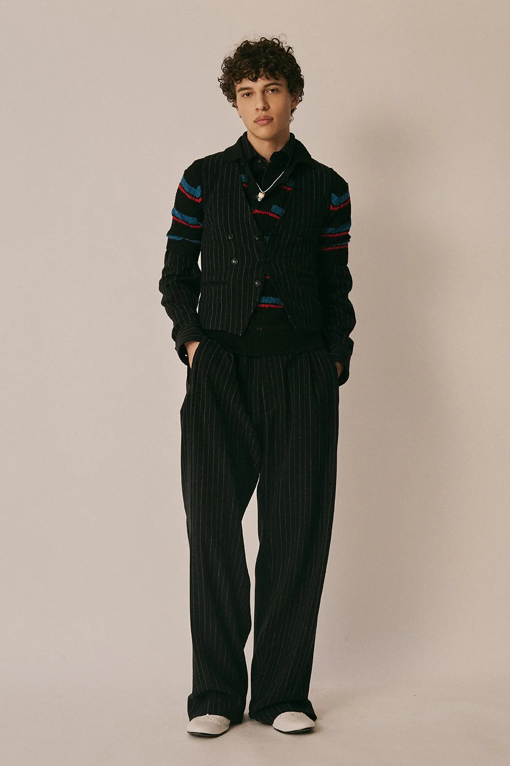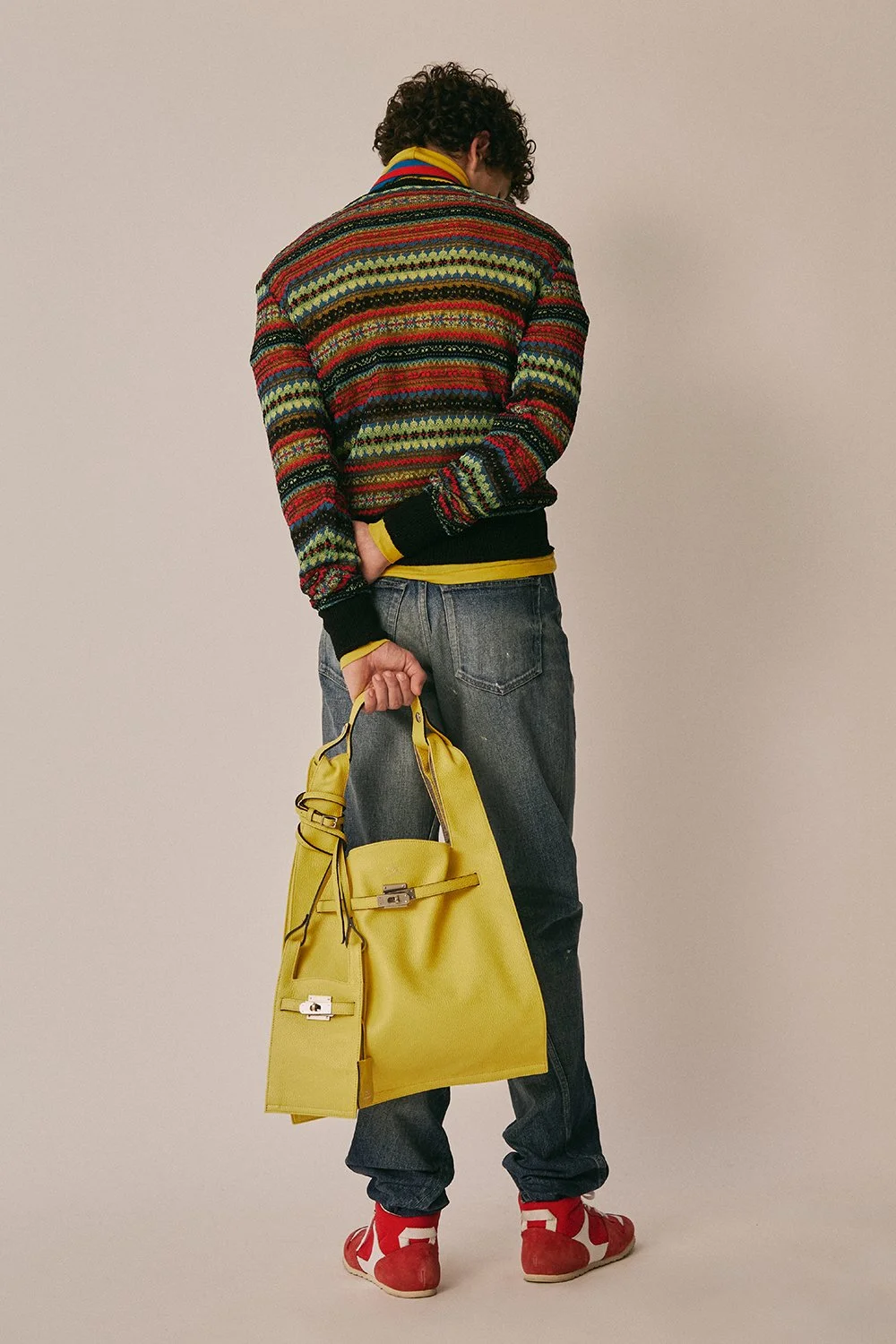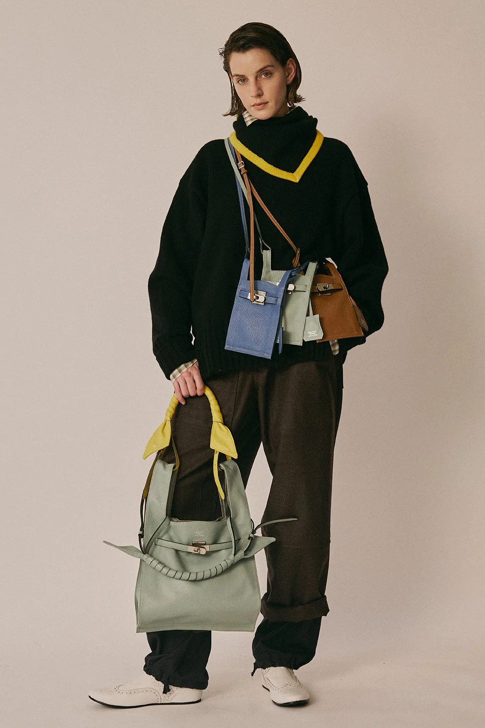 This season, the Japanese label, founded by Hidenori Kumakiri, focuses on the theme ‘resourcefulness’, whereby restraints and limitations are viewed as opportunities to recreate and wander. Archetypal clothing silhouettes are reimagined, fit and form are adjusted, fabrics are tweaked to coordinate with Winter, and colour is dialled down a touch, offering a new perspective on clothing. Legwear comprises wide-legged denim with twisted seams, leather-look trousers, and flowy dresses. Knitwear becomes a foundational layer, with sleeveless vests, chunky jumpers, and mixed-wool sweaters falling into place. The outerwear offering is inclusive, spanning oversized structured parkas with adjustable points, denim jackets, and cropped zip-up blousons available in different fabric blends. Tops, leather goods, shirting, and accessories are as critical to the line, providing energy to seasonal looks.