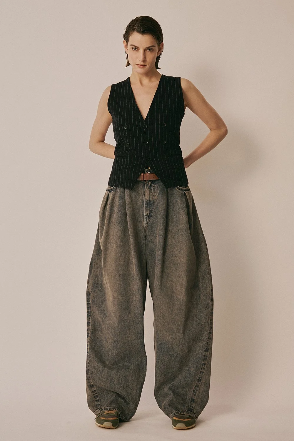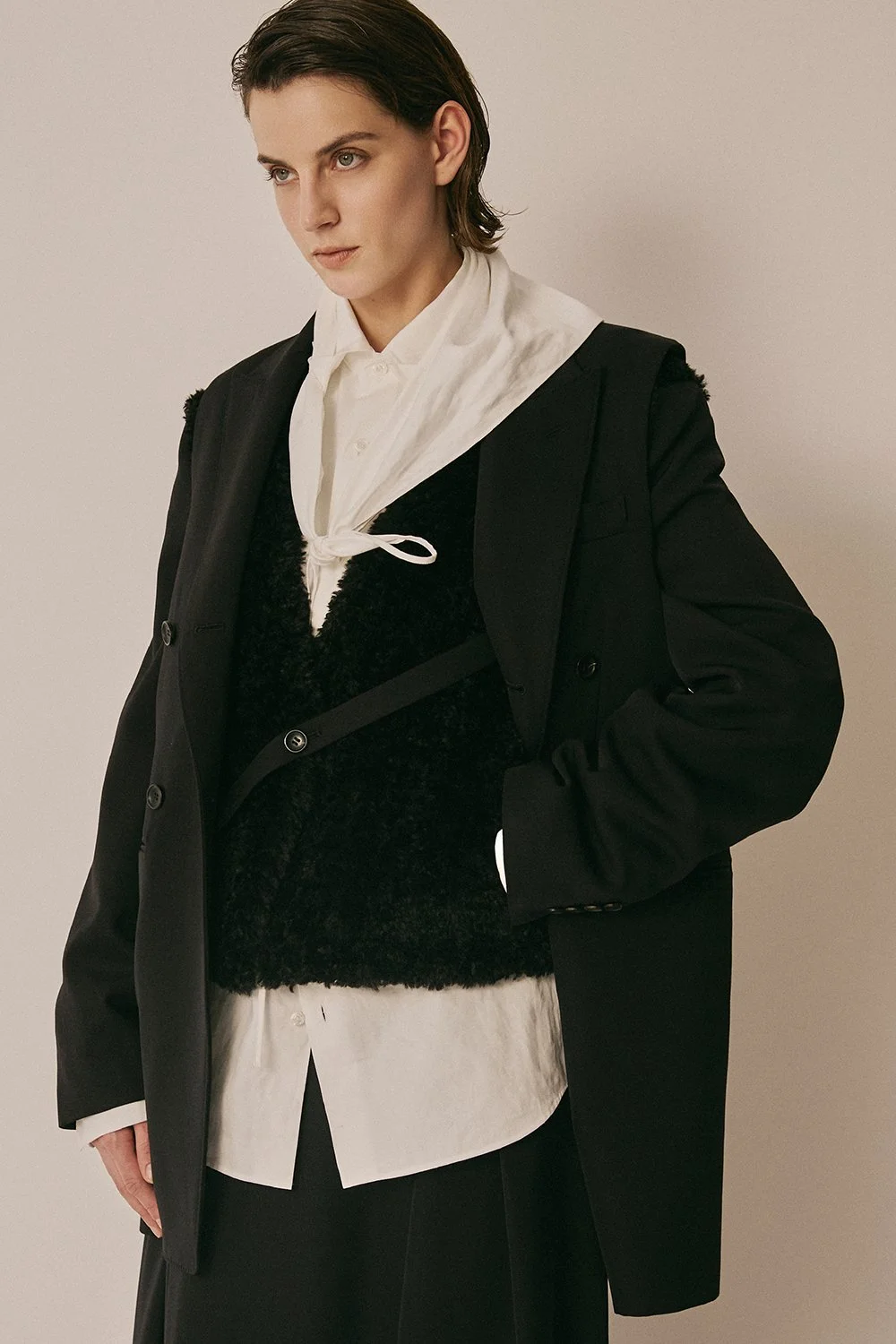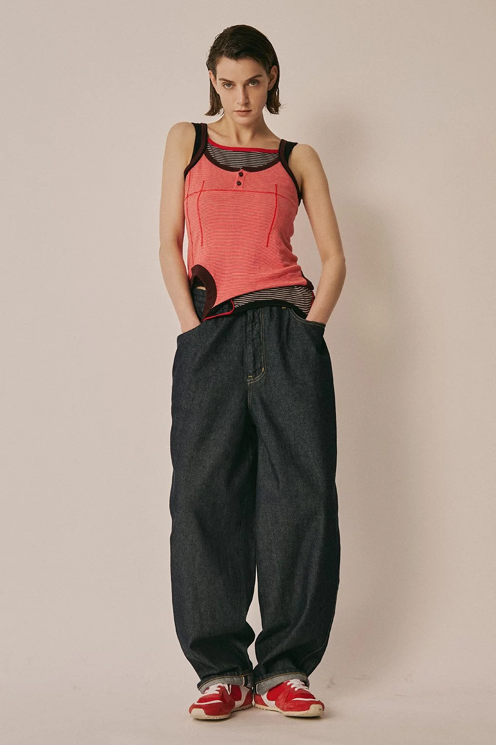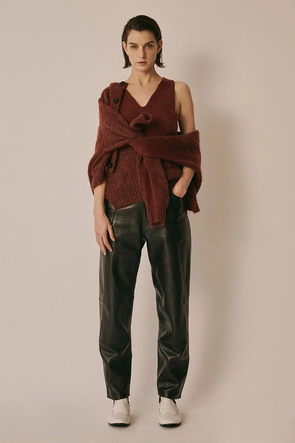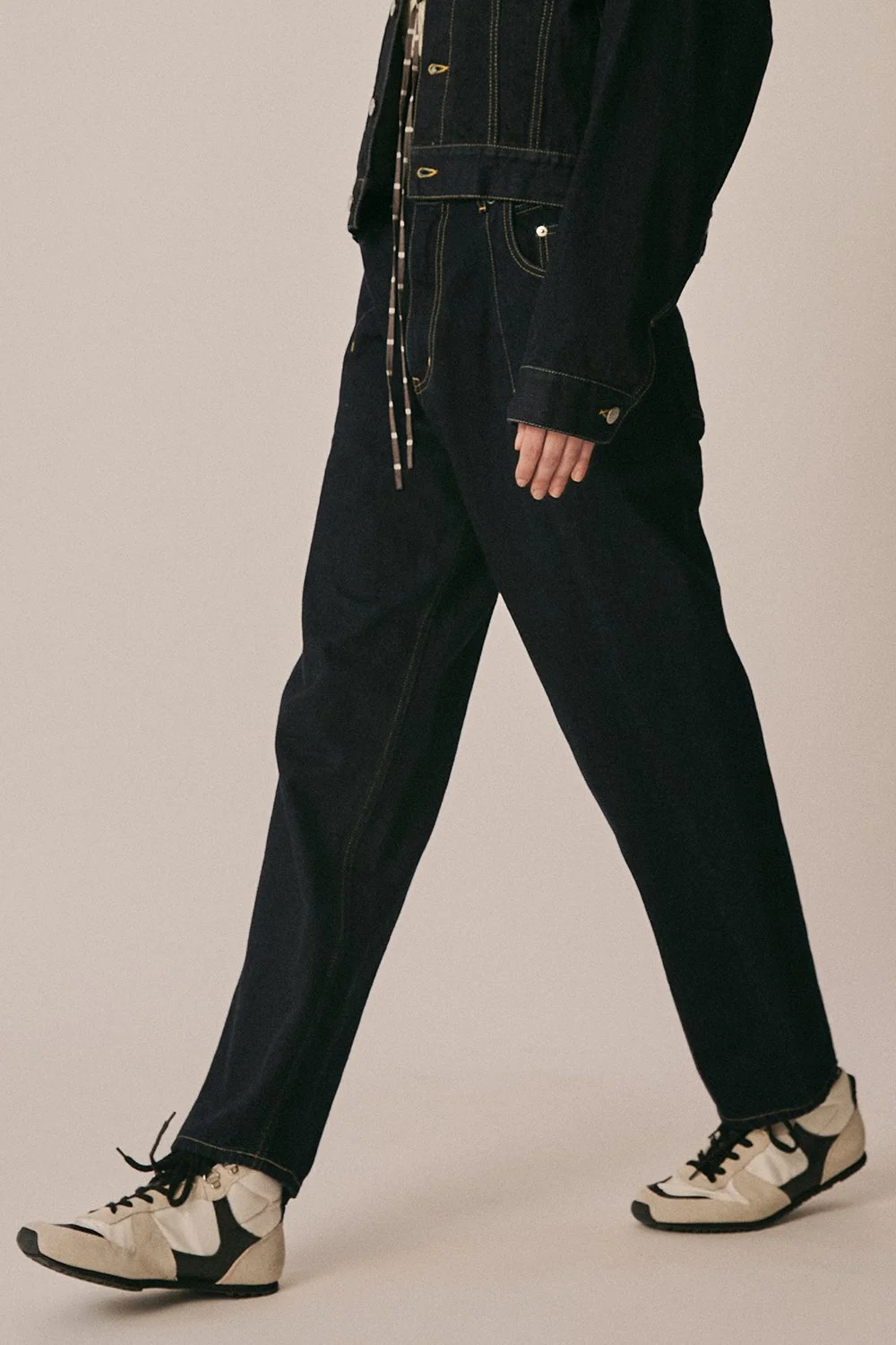 This season, the Japanese label, founded by Hidenori Kumakiri, focuses on the theme ‘resourcefulness’, whereby restraints and limitations are viewed as opportunities to recreate and wander. Archetypal clothing silhouettes are reimagined, fit and form are adjusted, fabrics are tweaked to coordinate with Winter, and colour is dialled down a touch, offering a new perspective on clothing. Legwear comprises wide-legged denim with twisted seams, leather-look trousers, and flowy dresses. Knitwear becomes a foundational layer, with sleeveless vests, chunky jumpers, and mixed-wool sweaters falling into place. The outerwear offering is inclusive, spanning oversized structured parkas with adjustable points, denim jackets, and cropped zip-up blousons available in different fabric blends. Tops, leather goods, shirting, and accessories are as critical to the line, providing energy to seasonal looks.