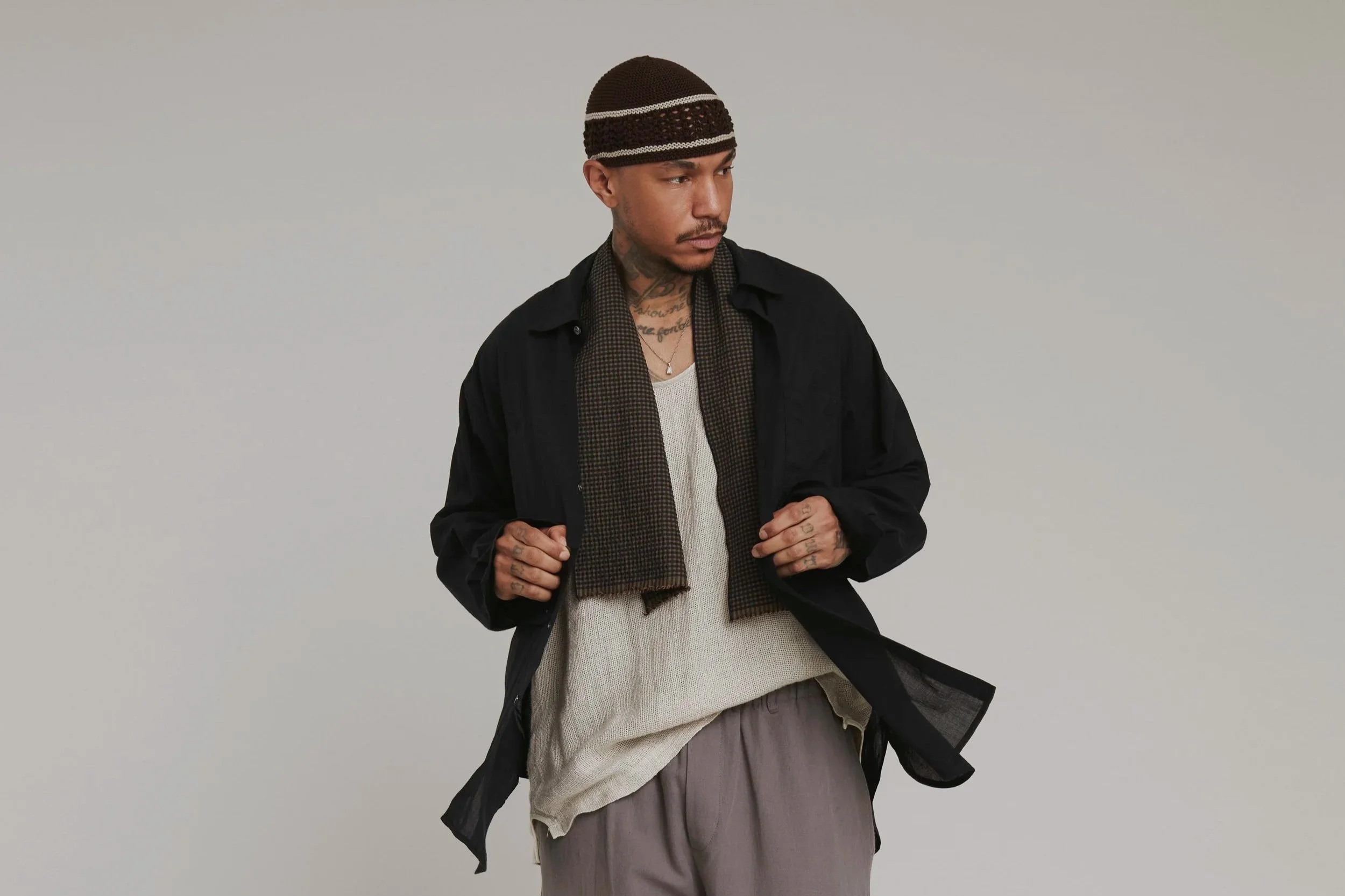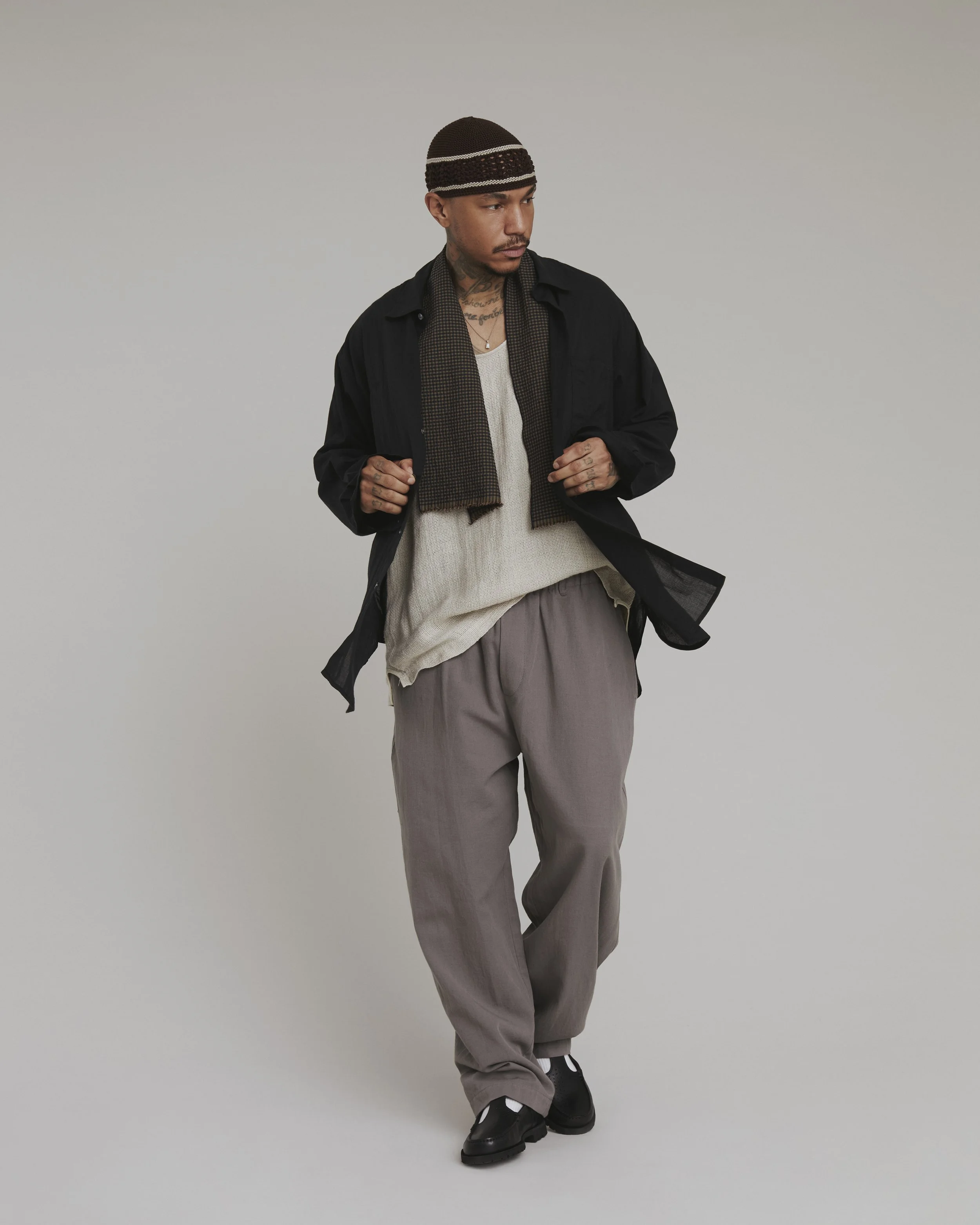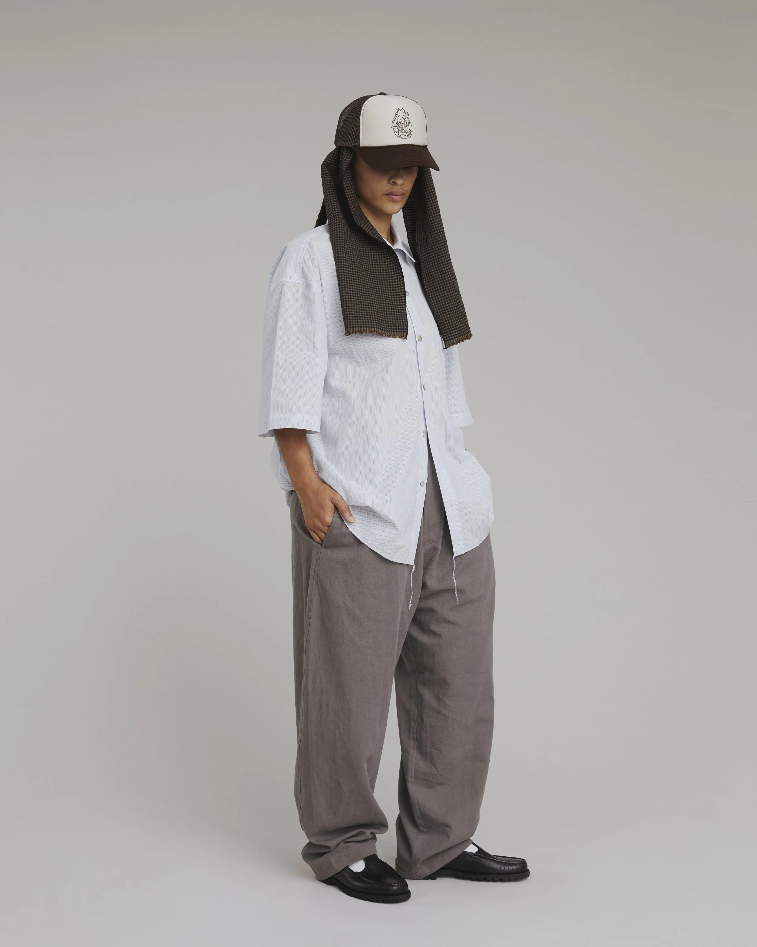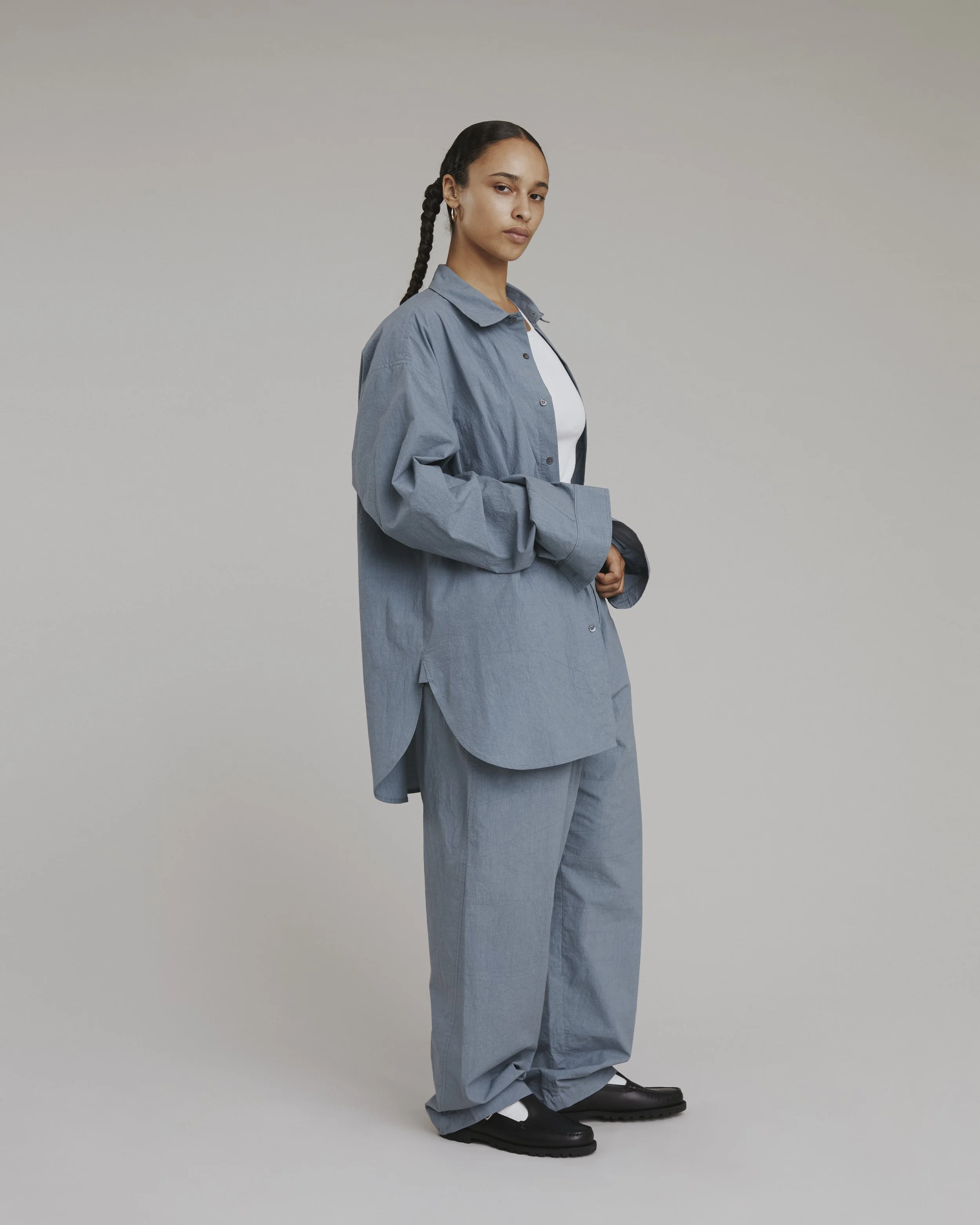 Built around the power of juxtaposition, the season explores where skyscraper meets nomad, where modesty meets provocateur, and where suiting meets wilderness. Longer shorts, coordinated separates, and relaxed layering create an effortless sense of versatility. Sheer black cotton shirting and seersucker plaids add texture and breathability, balancing structure with ease. The palette moves between cool maritime blues and the warm browns of Tunisian streets, grounding the collection in both travel and memory. Favourites of ours include the Ridge Jacket, the Aloha Shirt, and the Scribe Shirt.