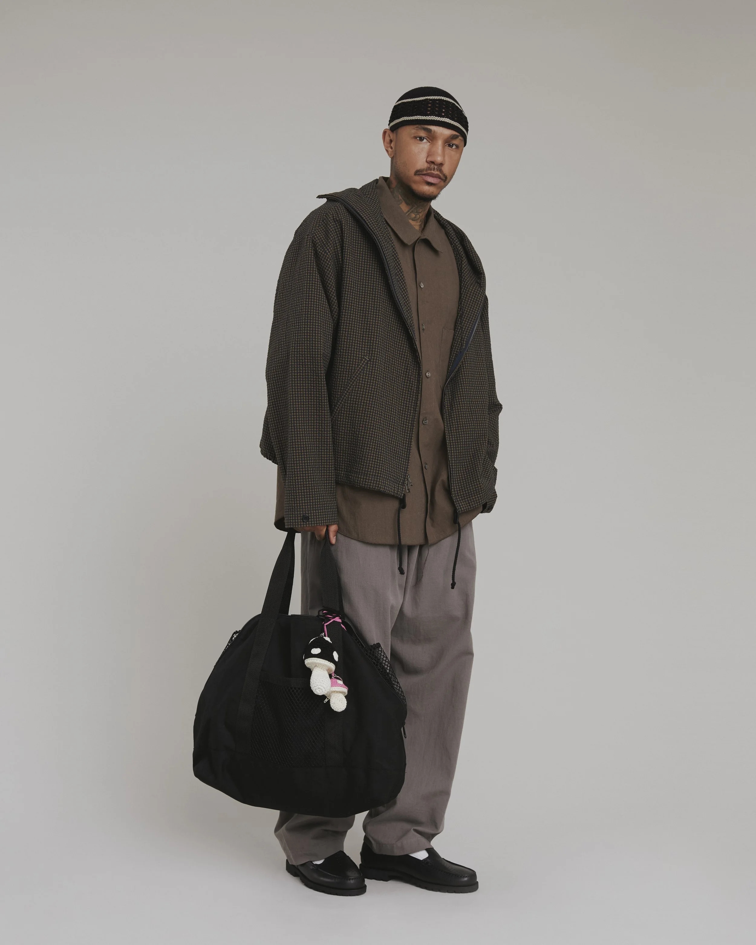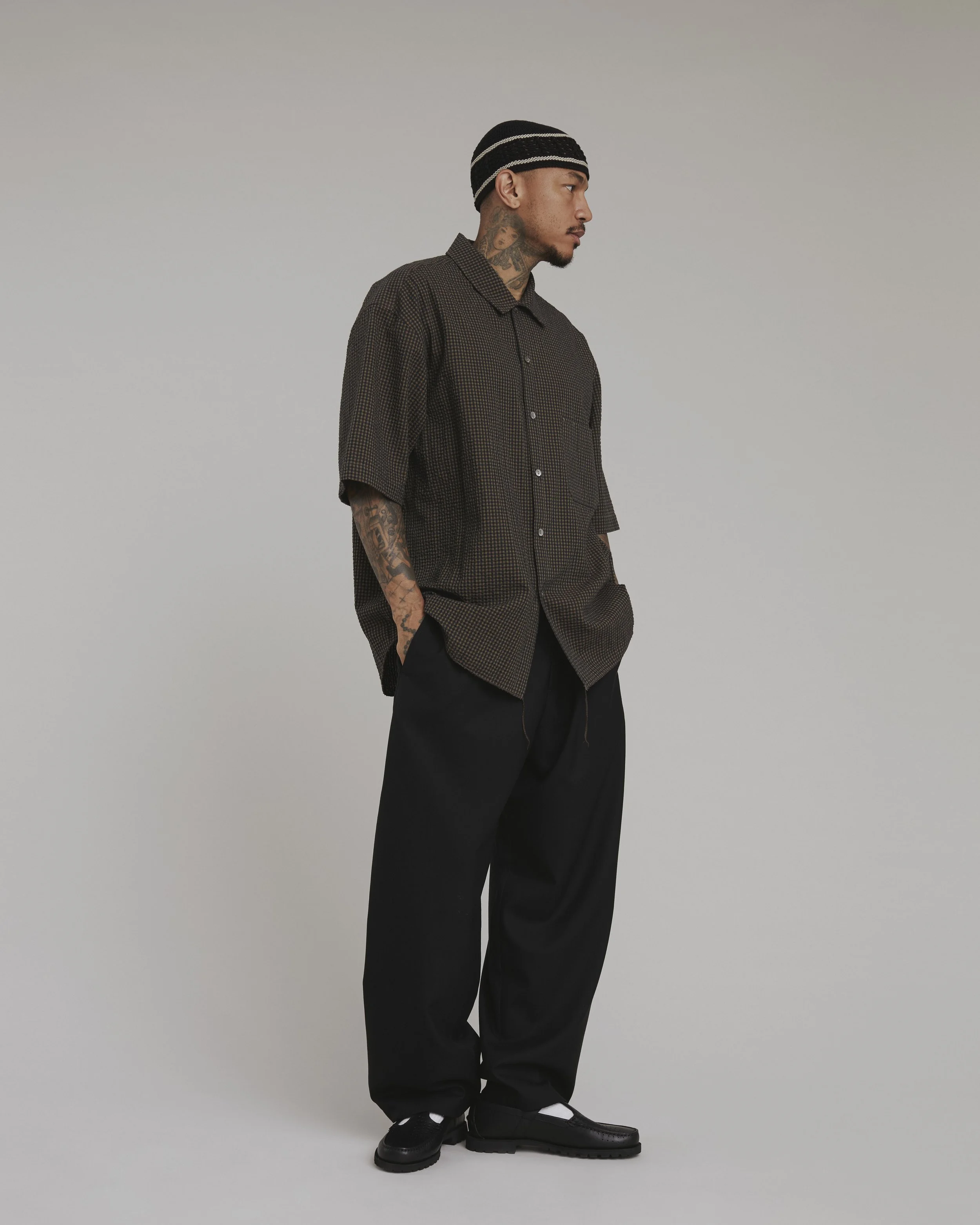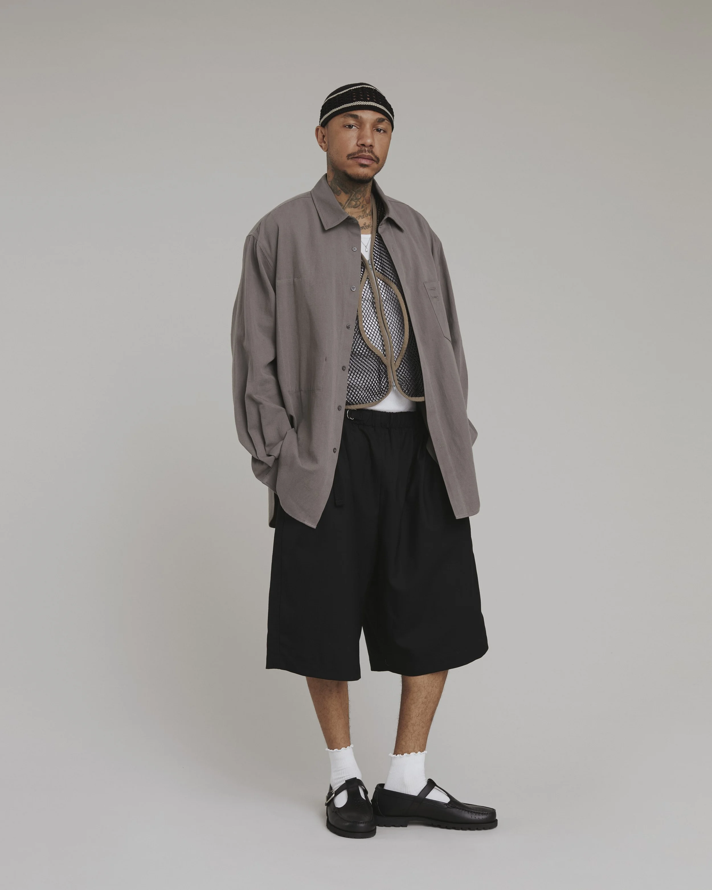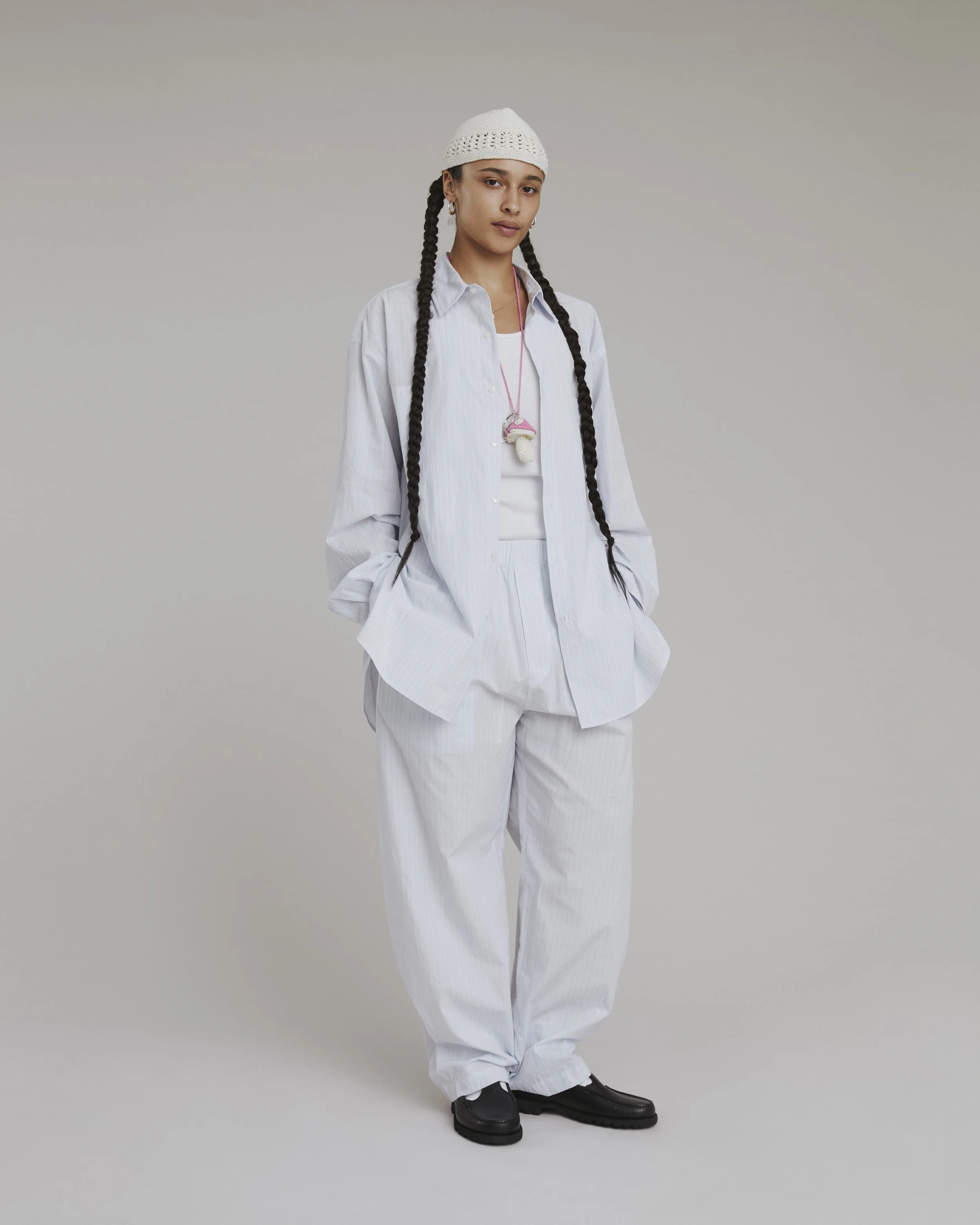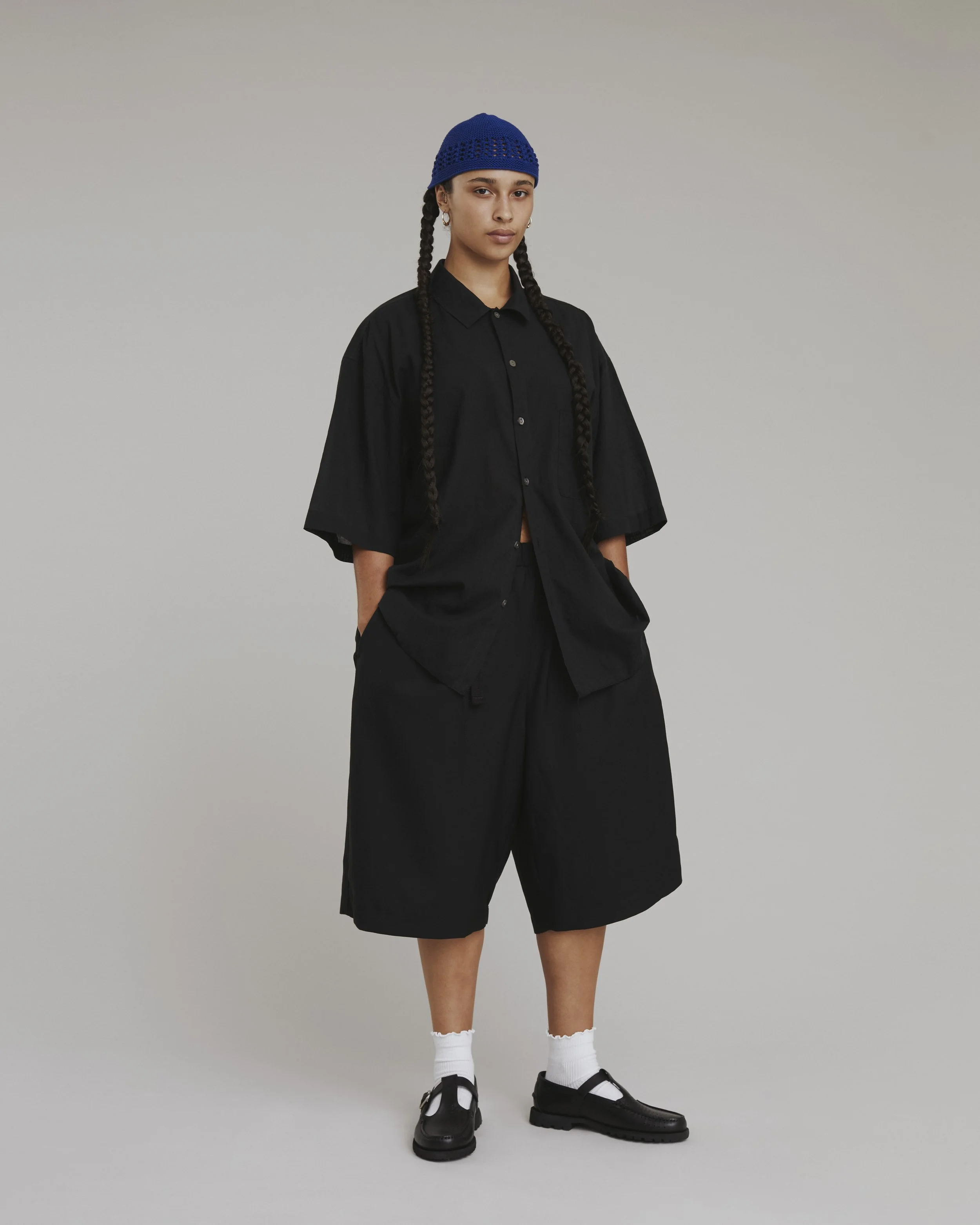 Built around the power of juxtaposition, the season explores where skyscraper meets nomad, where modesty meets provocateur, and where suiting meets wilderness. Longer shorts, coordinated separates, and relaxed layering create an effortless sense of versatility. Sheer black cotton shirting and seersucker plaids add texture and breathability, balancing structure with ease. The palette moves between cool maritime blues and the warm browns of Tunisian streets, grounding the collection in both travel and memory. Favourites of ours include the Ridge Jacket, the Aloha Shirt, and the Scribe Shirt.