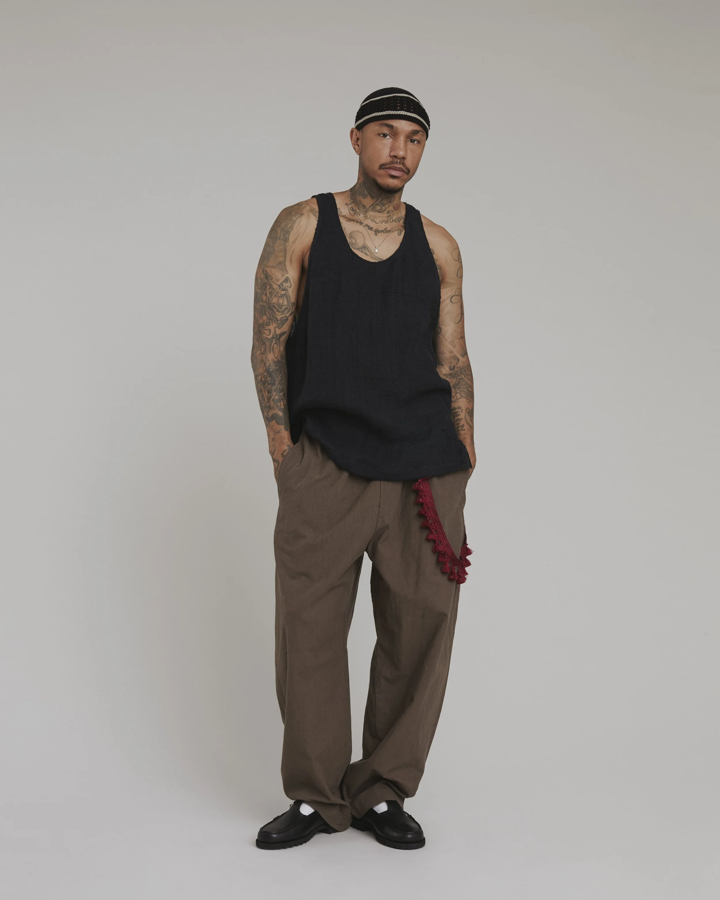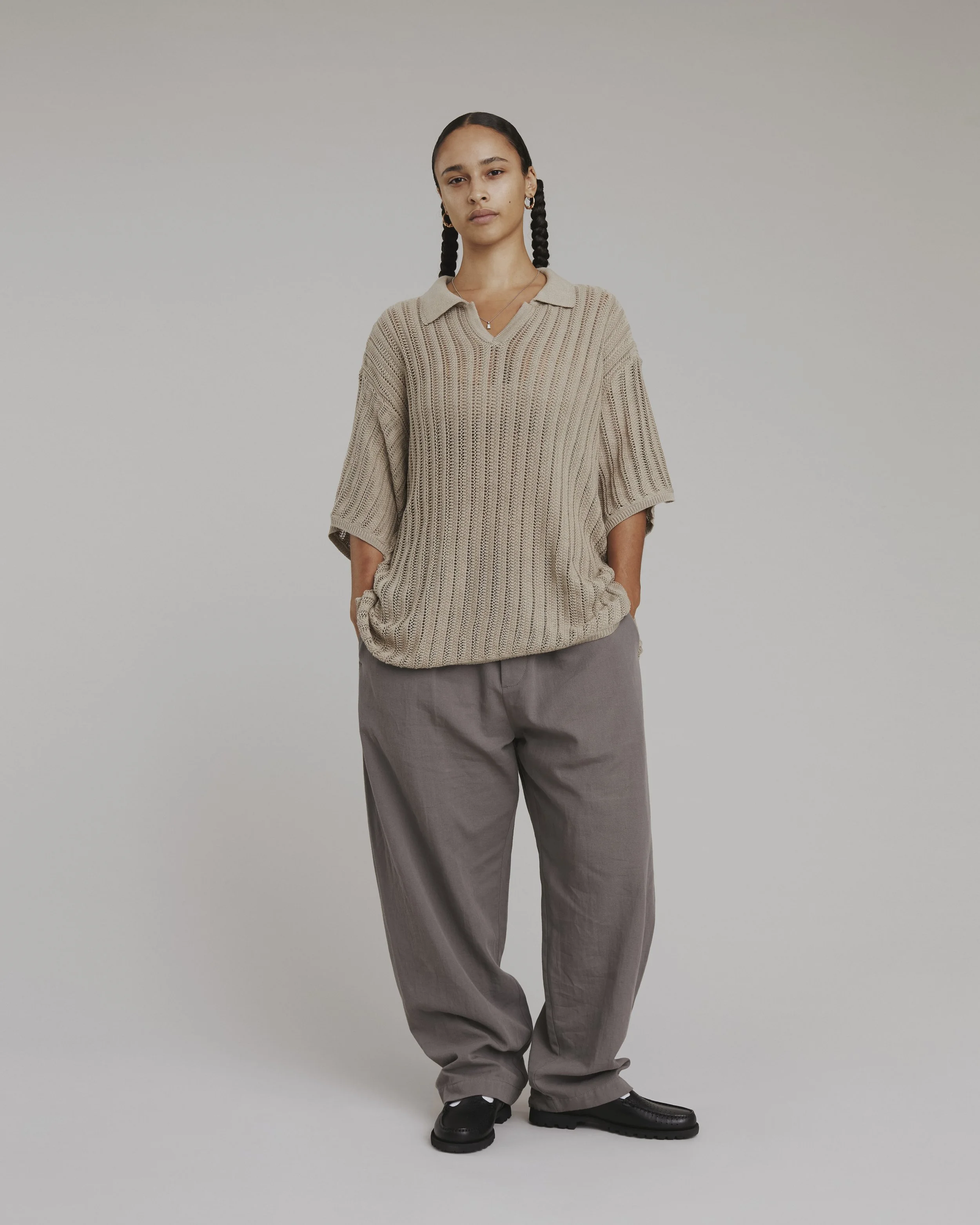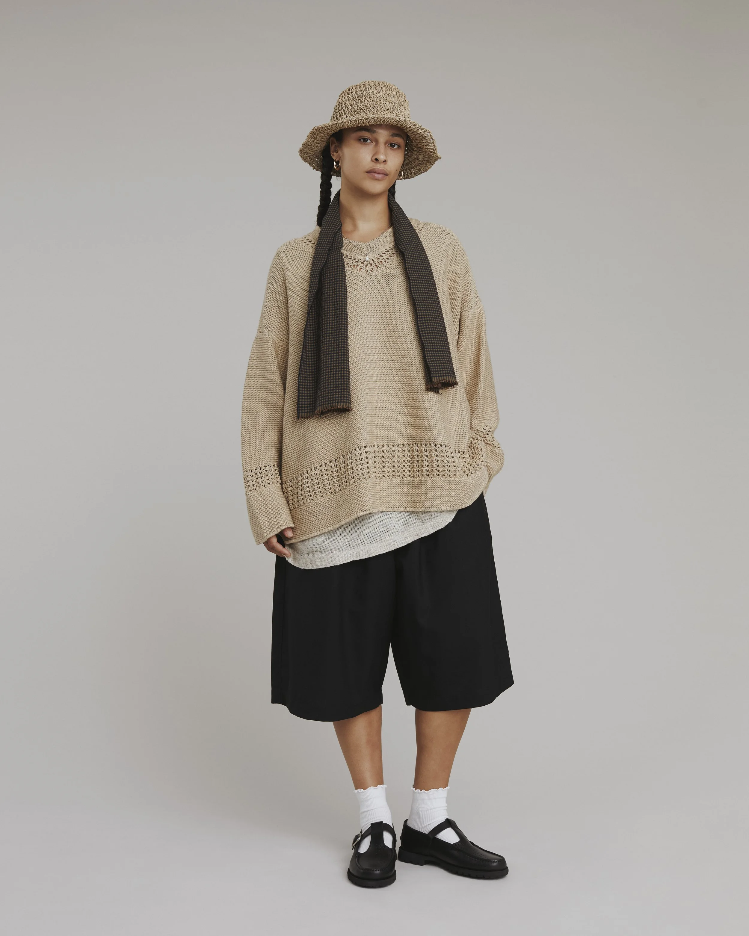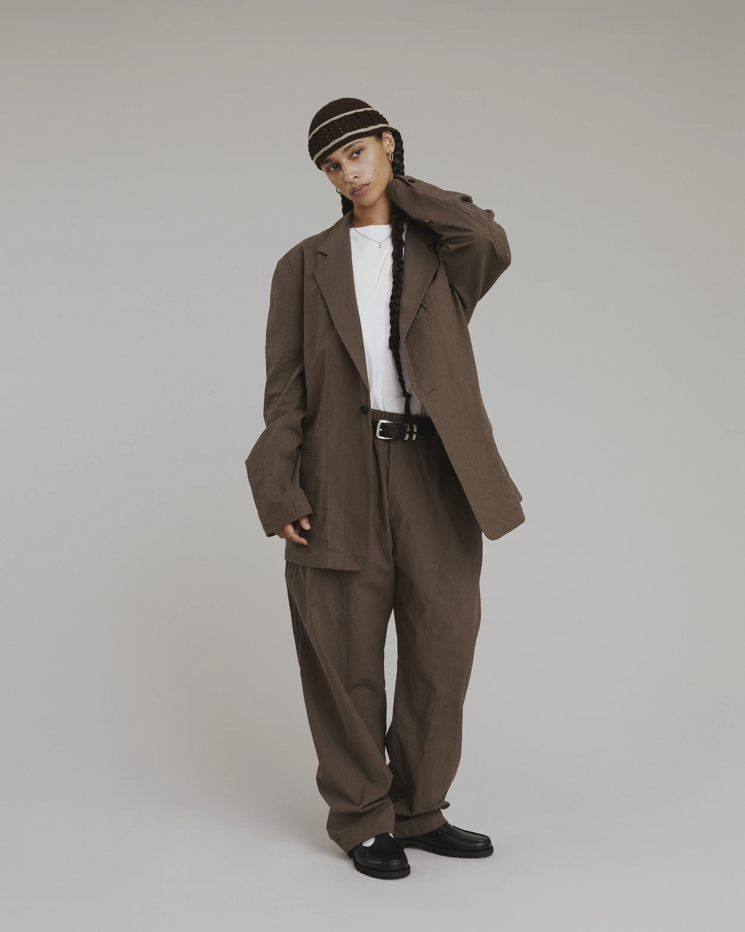 Built around the power of juxtaposition, the season explores where skyscraper meets nomad, where modesty meets provocateur, and where suiting meets wilderness. Longer shorts, coordinated separates, and relaxed layering create an effortless sense of versatility. Sheer black cotton shirting and seersucker plaids add texture and breathability, balancing structure with ease. The palette moves between cool maritime blues and the warm browns of Tunisian streets, grounding the collection in both travel and memory. Favourites of ours include the Ridge Jacket, the Aloha Shirt, and the Scribe Shirt.