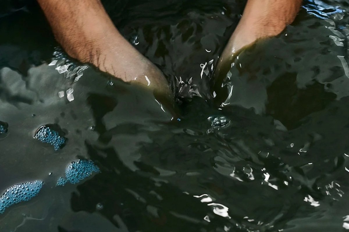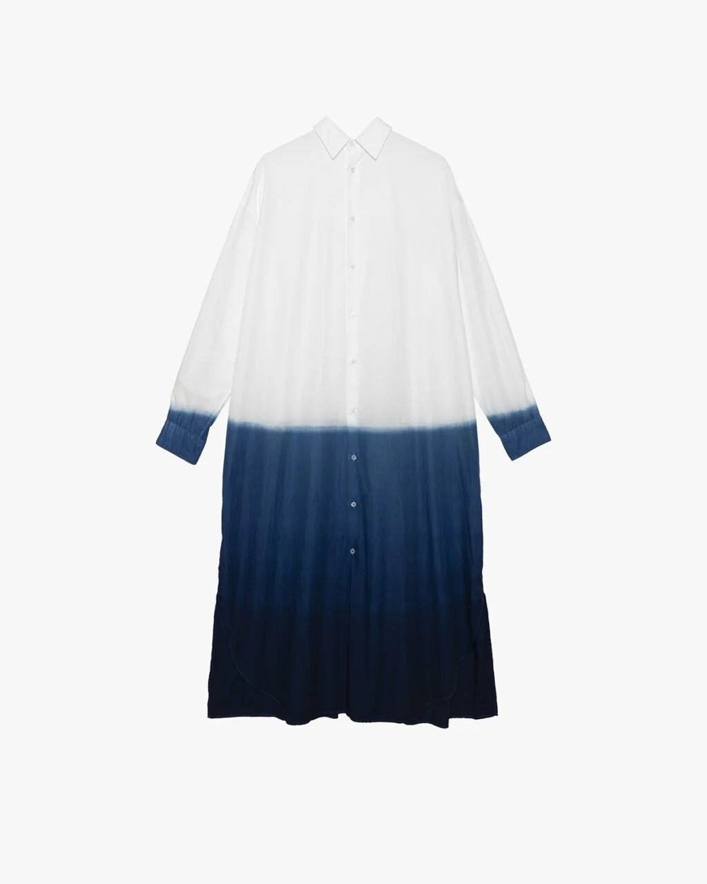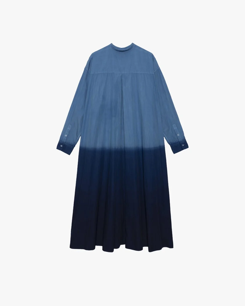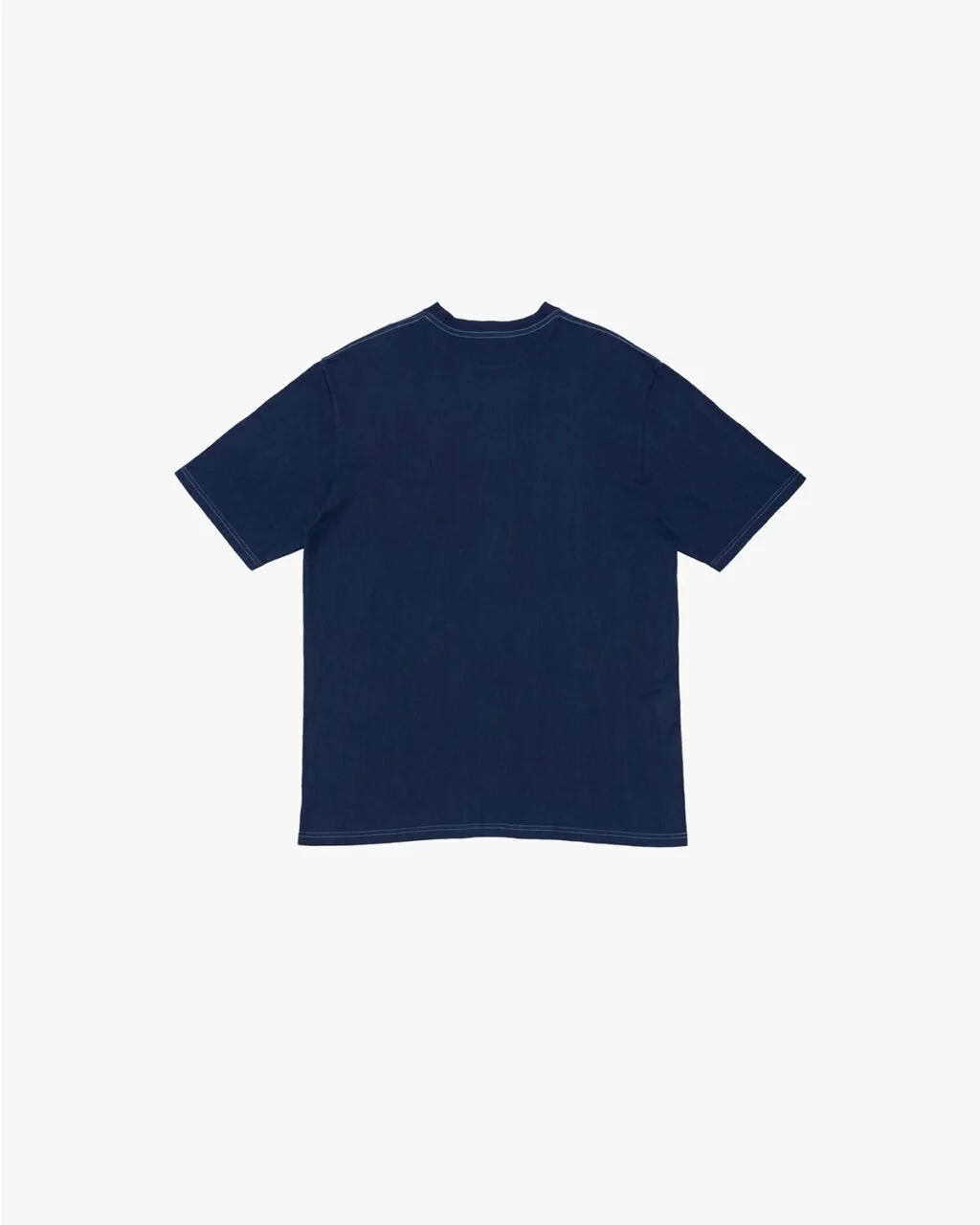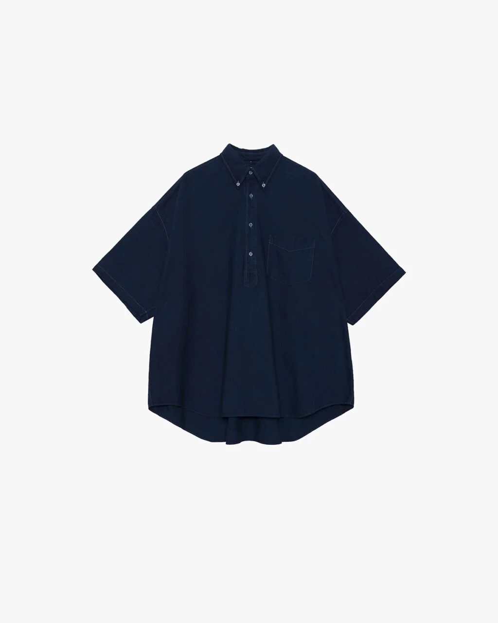 The Ryukyu Okinawa Research Institute consistently performs everything from soil creation to cultivation, dye extraction and dyeing to inherit the traditional Okinawa craft, Ryukyuu Okinawa. This particular colour, feel, and depth of indigo can only be achieved naturally and cannot be expressed using chemical dyes; the institute preserves tradition by naming it RYUKYU BLUE®. The result is four original Graphpaper styles, rendered in RYUKYU BLUE®, the S/S Pocket Tee, Oversized B.D Pullover Shirt, and the Oversized Shirt Dress in the Broad and Regular configurations. The t-shirts and shirts are dyed approximately 10 times, while being kneaded to ensure even colour distribution. In contrast, the shirt dress is defined by its graded fade, achieved by repeat dyeing to create a smooth transition between ligh and dark shades.