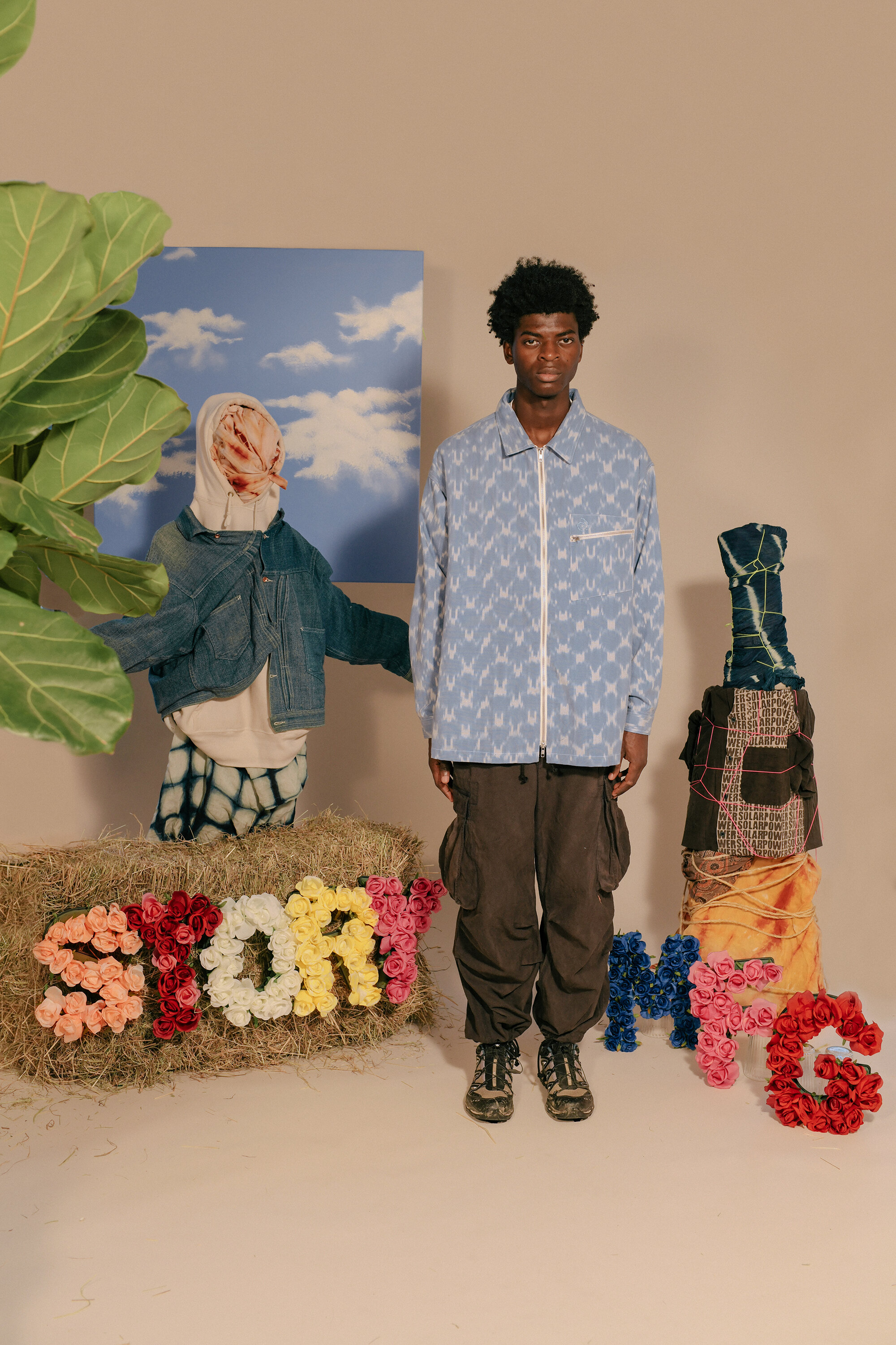 Dissecting and merging, the collection, from a glance, bears colors in spades: natural, seldom-dipped cool tones are among the most frequented, only adjacent to similarly shaded oranges and favorited pinks. These outfit two-pocket shirts of a characteristic wide cut, the texture ridden Polite pullover, and a zipped jacket that borderlines an overshirt and a coach. Elsewhere, more technical parkas seem to contrast by a small margin, yet they’re far removed from techwear in their patterned treatments of handwoven ripstop and a striking ikat. A custom made forest camo then rounds off the standout textiles, said to hide many an easter egg for the wearer to come across.